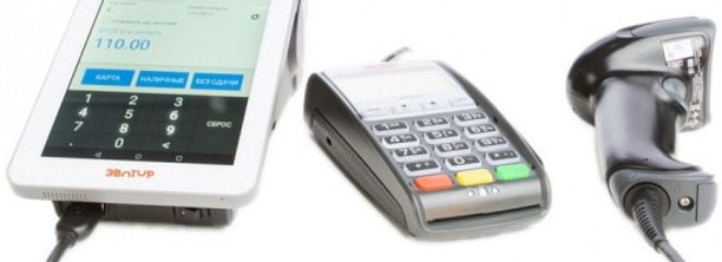 - В зависимости от формы налогообложения торгового предприятия возможны два варианта контрольно-кассовой техники (Смарт-терминала) в составе комплекса Эвотор: